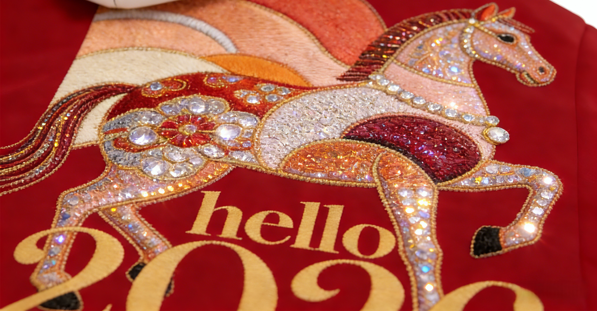 The front and sleeves feature ink-printed logos for cohesive sleek texture; on the back, the left-side horse motif uses embroidery + beadwork (fine stitching + shimmering beads) to highlight its limited-edition Year of the Horse identity; the right-side ink print creates visual contrast, merging retro and modern for a distinct, high-end style.