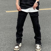 Custom Mens Streetwear Trousers Black Utility Cargo Pants