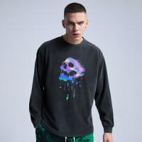 Hot Selling Acid Wash Sweatshirt Manufacturing | 100% Cotton Men's Oversized Sweatshirt in Stock | High Street Casual Reflective Printing Sweatshirt
