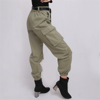 Custom Trendy Pure Color Trousers With Big Pockets Fly Front Button Pant Casual Streetwear Stretchy Cargo Pant