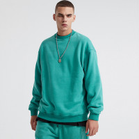 Custom Men's Solid Color Round Neck Hoodie Trendy Loose Pullover Hoodie Plush Men's Hoodie