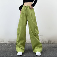 Custom Women's Loose Wide-leg Pants|Wholesale High Waist Drawstring Straight Pants|Custom Large Pocket Fashion Casual Pants