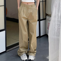 Custom Women's Autumn Turn-up Waist Design Pants|Wholesale Wide-leg Mopping Pants|Custom High Street Pants