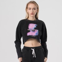 This long-sleeved CropT shirt, with a retro wash effect, enhances the high street and looks great with a custom logo.