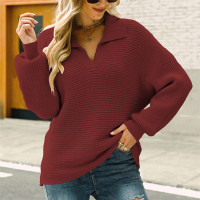 Custom Women's Fashion Sweaters|Long Sleeve Solid Color Sweater For Women| Loose Turn Down Neck Knitted Sweater