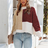 Custom Autumn/Winter Women's Round Neck Sweater| Two-color Mosaic Leopard Knit Sweaters Manufacturer| Fashionable Women's Pullover Sweater Factory