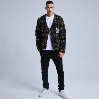 Original Casual Street Wear Coat|Whole Patterned Lamb Wool Coat|V Neck Full-zip Cardigan Coat Men
