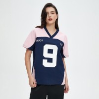 Oversized Jersey Women's V-Neck—customizable with logo prints, navy-pink contrast. Breathable fabric, trend-driven design. Scale orders effortlessly for retail or corporate clients.