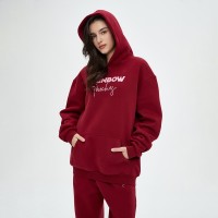 Essential Oversized Hoodie | Burgundy | Fleece | Letter Printed | Women Streetwear Clothing