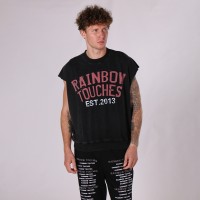 Edgy distressed sleeveless tank with DTG print. 250gsm, 100% cotton with snow wash & holes. Must-have streetwear for men.
