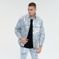 Sequined Silver Reflective Denim Jacket Men | Street Style | 100% Cotton | Streetwear Manufacturer