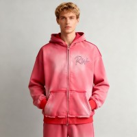 Acid Wash Zip-up Hooded Hoodie Men | Rhinestone + Spray | Streetwear Manufacturer