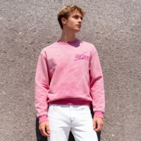 Men's Pink Acid Wash Sweatshirt | Spray + Rhinestone | 100% Cotton | OEM Streetwear