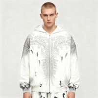 Men's DTG Hooded Jacket | Rhinestone + Spray + DTG | 100% Cotton | Streetwear Manufacturer