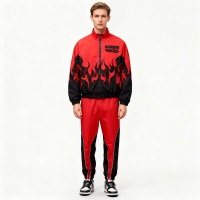 Red Black Flame Print Tracksuit | Men's Sporty Jacket Pants Set | Custom Streetwear | OEM Streetwear