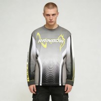 Full sublimation print gradient moto jersey, breathable performance fabric. Racing streetwear style, customisable for OEM brands.