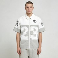 Bold ink-printed 23 numerals, paneled design, and skull pattern define this breathable cotton-blend streetwear shirt for casual urban style.