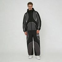 Elevate your street style with our black and gray hooded track suit set. Water-resistant nylon blend, customisable, and designed for bold outdoor vibes.
