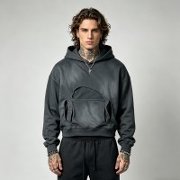 Sun faded washed cutout hoodie, heavyweight cotton, streetwear-ready, custom orders welcome.